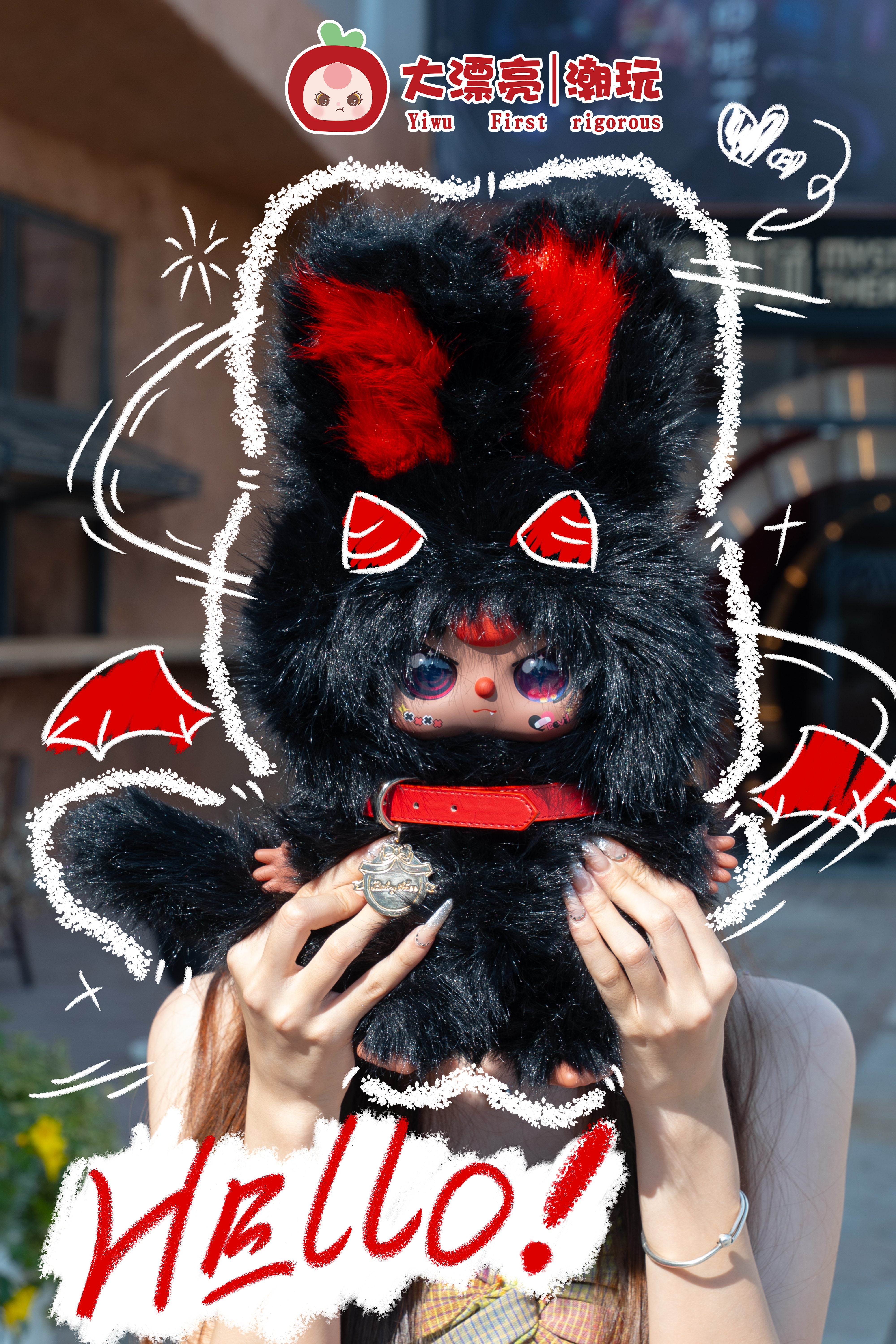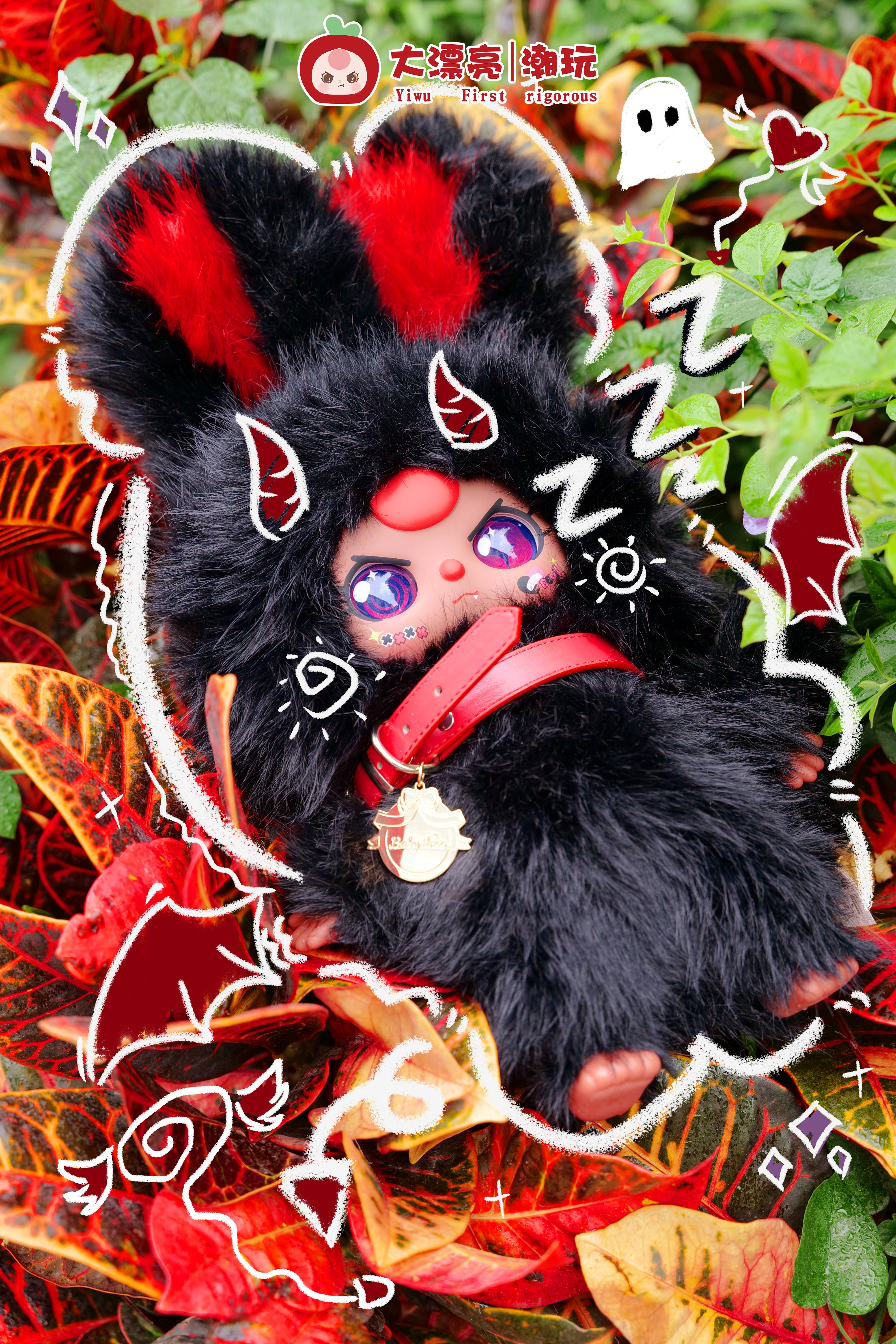 Design: Piccoli diavoletti kawaii con elementi di trasformazione (corna, ali, accessori sfumati e metallici)