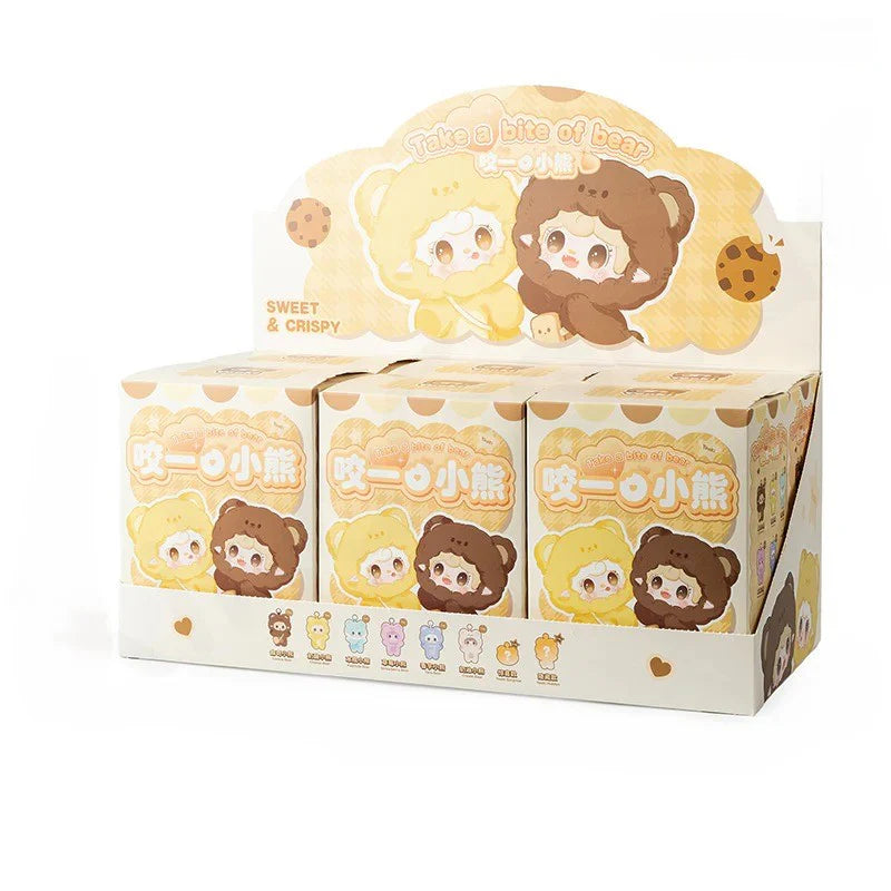 Scopri la dolcezza irresistibile della collezione Yooki Take a Bite of Bear – Blind Box! Questa serie esclusiva comprende 7 modelli regolari + 1 secret raro, tutti dedicati a simpatici orsetti dalle espressioni buffe e accessori golosi. Ogni figura cattura l’essenza kawaii con dettagli curati e colori vivaci, rendendola perfetta da collezionare, regalare o esporre per aggiungere un tocco tenero e originale alla tua giornata.